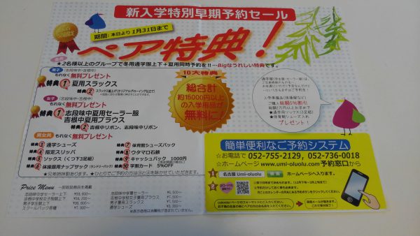 この度は2019年度中学校入学の方へ、とてもお得なお知らせです!!