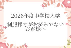 2026年度中学校入学:制服採寸がお済みでないお客様へ
