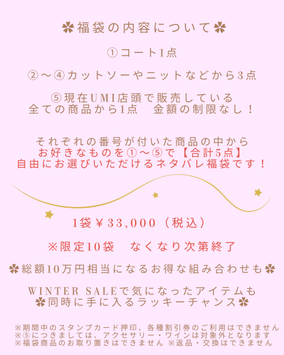 🌸ネタバレ福袋販売 1袋 ¥3,3000(税込)