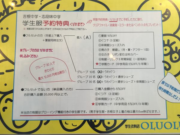 OLUOLUでは、名古屋市志段味中学校・吉根中学校の学生服を取り扱っております。