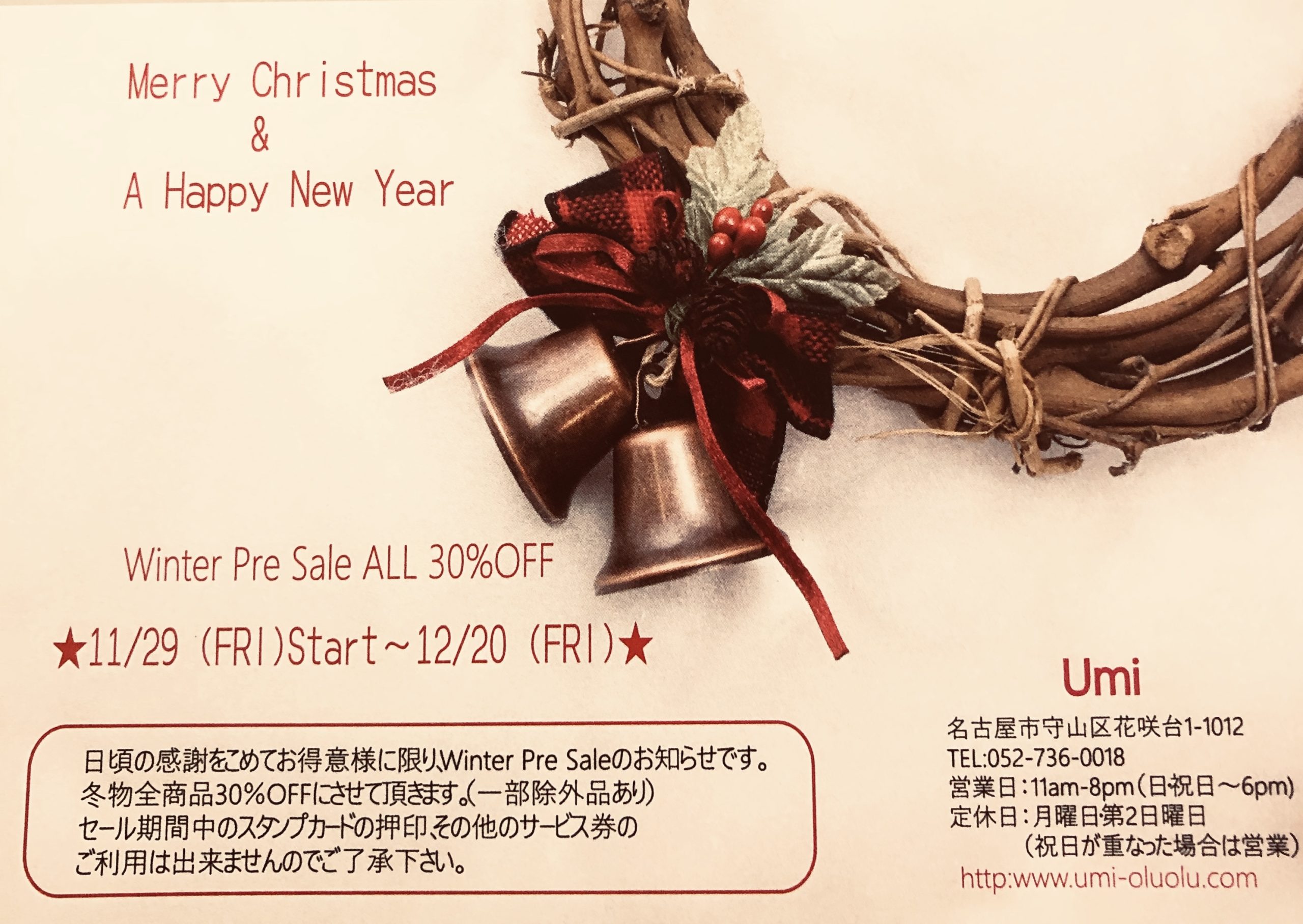 こんにちは! いつもUmiへご来店くださり、誠にあ