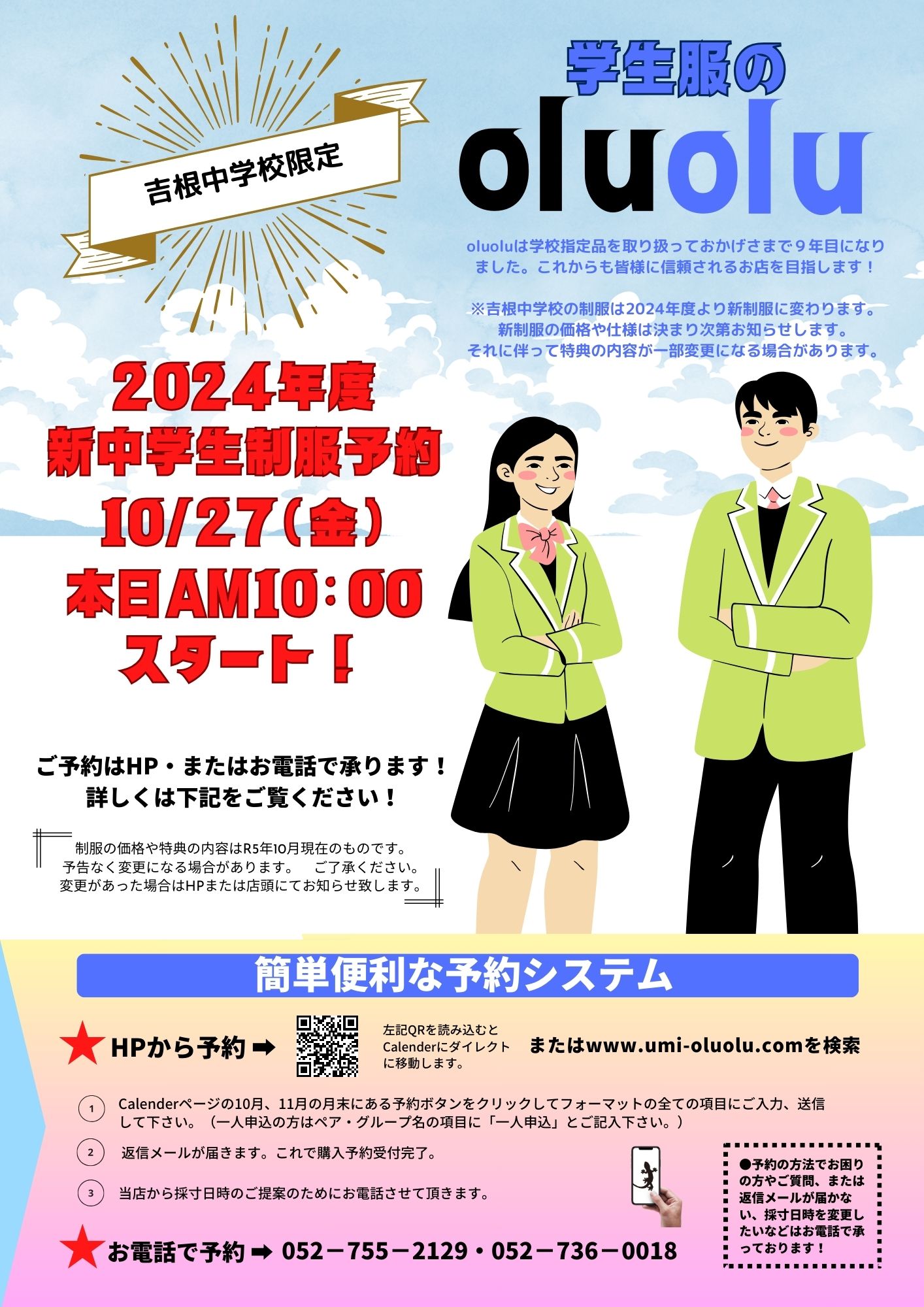 2026年度中学校入学:制服採寸がお済みでないお客様へ