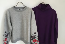 一枚でインパクト大のトップス パープルは顔まわりを